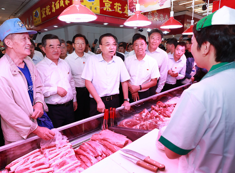 (李克強(qiáng)總理在哈爾濱菜市場(chǎng)詢問豬價(jià) 圖源中國(guó)政府網(wǎng))