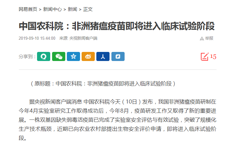 與此同時,中國農科院今日發布,非洲豬瘟疫苗即將進入臨床試驗階段,對養豬人來說,這無疑是最大的利好消息。