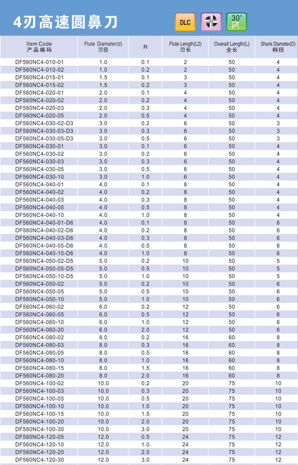4刃小徑深溝圓鼻刀