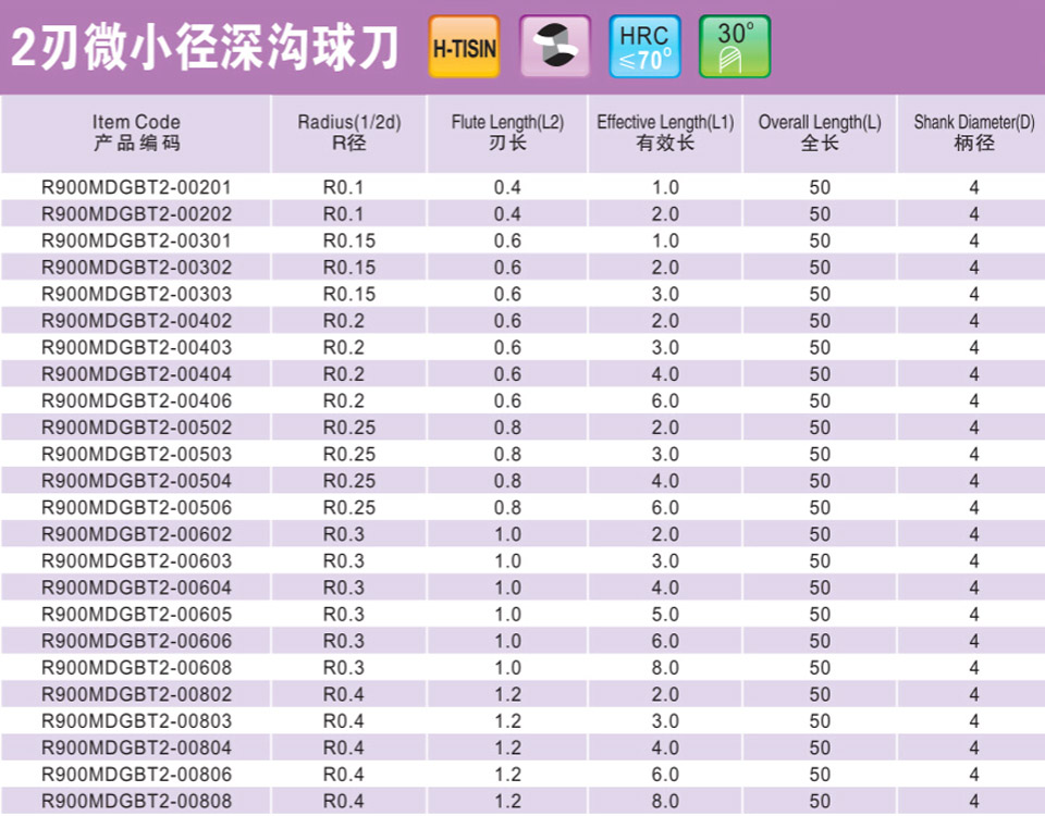 2刃微小徑深溝圓鼻刀