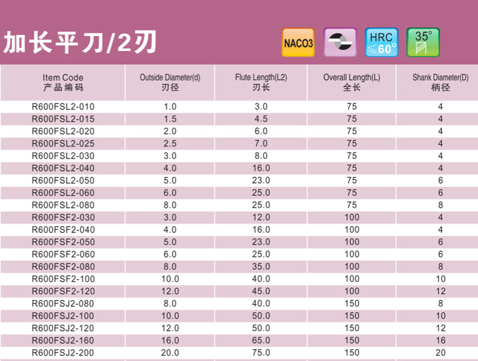 2刃微小徑深溝平刀