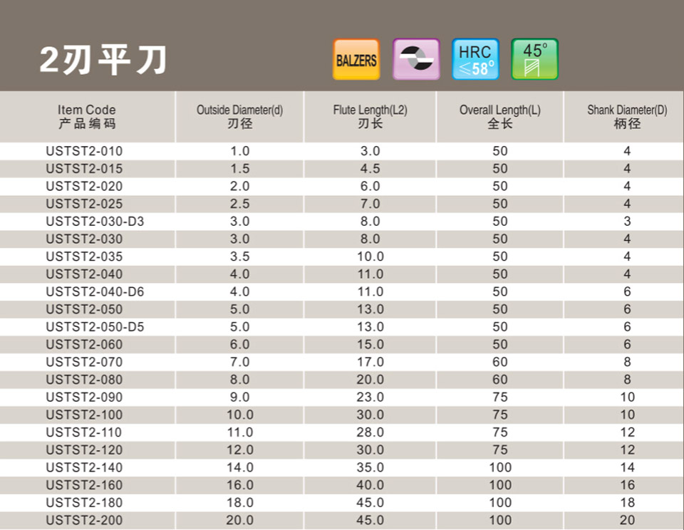 2刃微小徑深溝平刀