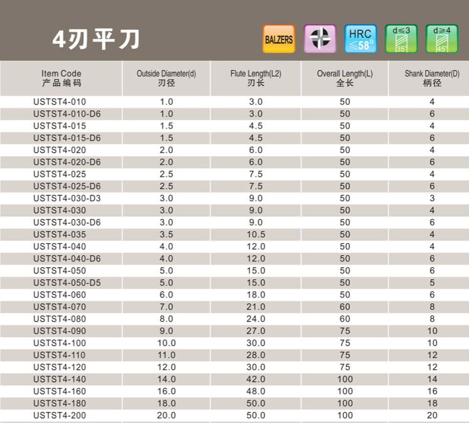 4刃小徑深溝平刀